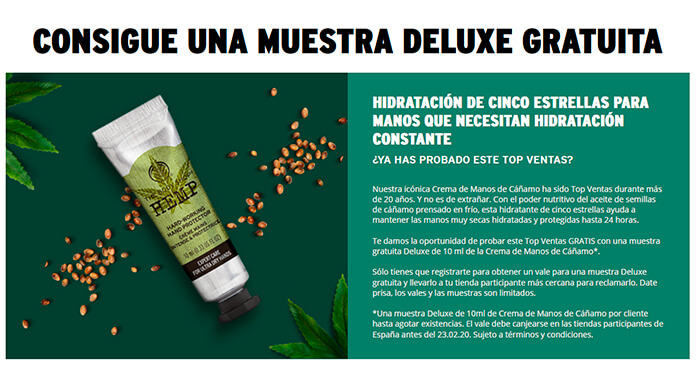 La entrada Muestras gratis de la Crema de Manos de Cáñamo de The Body Shop se publicó primero en Muestras Gratis Y Chollos.