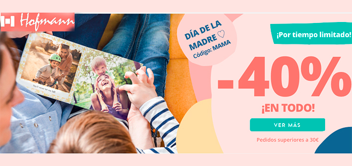 Pronto es el Día de la Madre y ¡Hofmann lo quiere celebrar con un 40% de rebaja en todos sus productos! Gracias a esta promoción se podrá ahorrar durante sólo unos días al escoger el producto preferido y crear un Hofmann al mejor precio: Álbum fotográfico, lienzos, libro apaisado, smart album, calendarios, productos personalizados, etc. Perfecto para recordar aquellos momentos que tanto nos gustan 🙂 ¡Es un ganga disfrutar de este rebaja! El último día para disfrutar de este rebaja es el 29 de abril de 2019. Para conseguir un 40% de rebaja en todos los productos Hofmann puedes hacer…