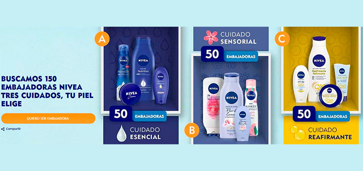 Buscan 150 embajadoras Nivea Tres Cuidados