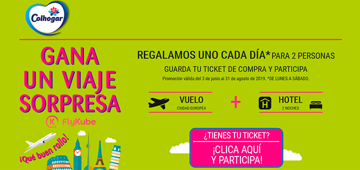 Seguro que te interesará saber que ¡Colhogar regala un viaje sorpresa para 2 personas cada día! Pues si, entre todos los que participen van a entregar 78 grandes premio, uno cada día 🙂 Cada uno consistirá en una experiencia de viaje Flykube que a su vez estará compuesto por ¡un viaje para dos personas con vuelos y dos noches de hotel en un destino sorpresa a una ciudad europea! Así que, los obtienedores no conocerán el destino del viaje hasta dos días antes de la fecha de disfrute. ¡¿A que suena bien?! Esta promoción estará activa en toda España hasta el…