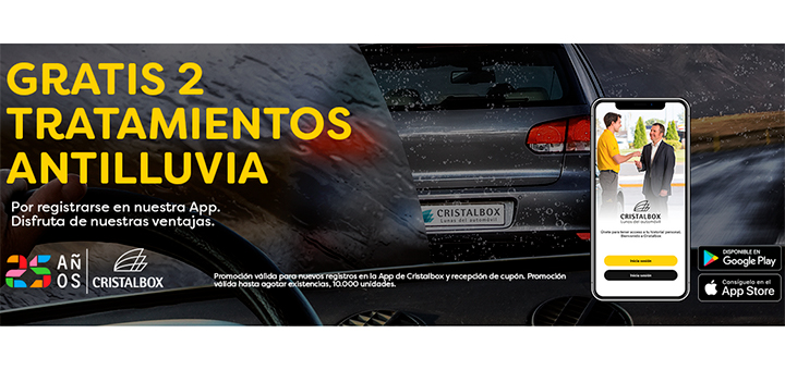Puede ser que te interese saber que podrás conseguir con esta promo de Cristalbox ¡2 tratamientos antilluvia! En Cristalbox cumplen 25 años y quieren celebrarlo con sus fans 🙂 Ahora, por registrarte en su App te regalan 2 cupones de tratamiento antilluvia, para ti y para quien tu quieras a través del área Mis Cupones de la App :p Estos tratamientos van geniales para ver mejor la carretera cuando llueve ya que hacen que el cristal repele el agua. Es fácil. Lo contamos todo a continuación. Para conseguir gratis 2 tratamientos antilluvia con Cristalbox puedes hacer lo siguiente: Registrarse en…