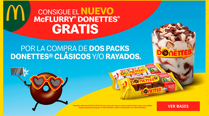 ¡Consigue el nuevo McFlurry Donettes gratis! Por la compra de dos packs Donettes Clásicos y/o rayados podrás conseguir el nuevo McFlurry Donettes gratis en McDonald’s. ¡Es genial! Según parece regalan estos innovadores regalos de forma segura a aquell@s que participen correctamente en la promoción. Es un pedazo de chollo. ¿Estará tan rico este helado como […]