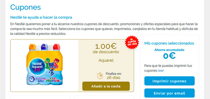 Hoy te cuento que Nestlé nos trae ¡nuevos cupones rebaja! para ahorrar esta navidad :p Durante todo el año, Nestlé pone al alcance de sus fans un montón de cupones a elegir para ahorrar al adquirir su productos. Y ahora hay desde 0.40€ hasta 1€ de rebaja en una gran variedad de productos :p como en Kit Kat Bites, Nesquik noche, postres La Lechera… ¡Y el cupón rebaja principal de este mes es 1€ en Aquarel! Agua de gran calidad para hidratarnos esta navidad. Son muchos los productos de grandes marcas aptos para toda la familia, para disfrutar en cualquier…