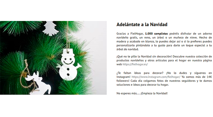 A pocas semanas de Navidad, Correos Sampling da la oportunidad de disfrutar de ¡un adorno navideño gratis! Presentan Fiel Hogar, una tienda de decoración online con fantásticos productos a gran precio Y ahora también, a través del servicio de Correos dan la oportunidad a 1.000 samplistas a disfrutar de un adorno navideño gratis en forma […]