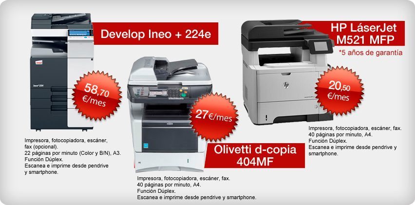 Con su nueva promoción podrás disponer de copiadoras, fotocopiadoras, escáneres y equipos multifunción con cuotas mensuales ajustadas a todos los bolsillos.