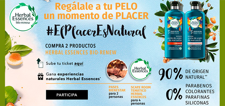 Nos ha encantado conocer esta promoción con la que se podrá obtiener ¡experiencias naturales Herbal Essences! Así, por la compra de productos Herbal Essences Bio-Renew se podrá conseguir uno de los regalos que reparten: 10 Scape Rooms (Temáticos para 4 personas) y 10 Experiencias (Pases bienestar para 2 personas). Unos grandes premio increíbles para relajarse y pasarlo en grande en buena compañía 🙂 Hay para participar hasta el 30 de abril de 2019. Si te gustaría obtiener experiencias naturales Herbal Essences puedes hacer lo siguiente: Adquirir 2 productos Herbal Essences Bio: Renew ó 1 Pack de Herbal Essences Bio : Renew…