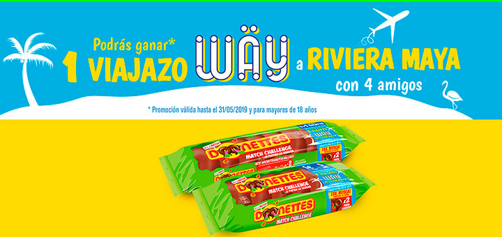 Acabamos de encontrar esta promoción de Donettes con la que se podrá obtiener ¡un viaje a Riviera Maya con 4 amigos! Sólo hay que encontrar en el super el nuevo pack promocional de Donettes Match Challenge con masa cacao, cobertura choco donde hay 2 que pintan la lengua y participar en esta promo para poder obtiener un viaje a Riviera Maya con 4 amigos 🙂 Hay dos fases y participar es muy fácil, lo contamos todo a continuación. El obtienedor@ final se llevará: 1 lote de 5 packs Donettes MatchChallenge y 1 viaje a Riviera Maya para 4 personas. Además, para…