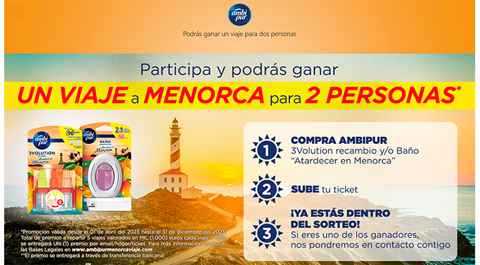 ¡obtiene un viaje con Ambipur este año! En Próxima a ti te invitan a obtiener un viaje a Menorca para 2 personas con Ambipur 🙂 Sólo hay que comprar un Ambipur 3volution Recambio Menorca promocional 8700216045674 o Ambipur baño Menorca promocional 8700216046312 en establecimiento adherido a la promoción – El Corte Inglés, Carrefour, BM, Amazon […]