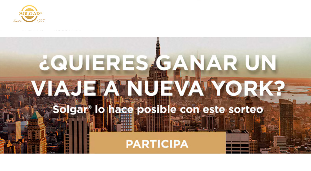 ¡Hasta fin de año podrás obtiener un viaje con Solgar! Al comprar productos Solgar podrás registrarte y entrar en el sorteo de un viaje para 2 personas a Nueva York para conocer de primera mano la ciudad donde nació Solgar hace más de 75 años 🙂 Participar es muy fácil y, como puedes puedes ver, […]