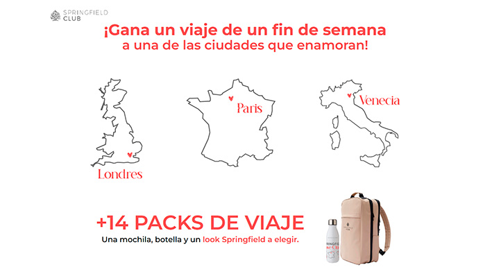 ¡obtiene un viaje con Springfield Love Cities! ¿Te lo puedes creer? Al concursar en esta promoción de Springfield podrás obtiener un viaje de un fin de semana a una de las ciudades que enamoran como Londres, París o Venecia. Pero esto no acaba aquí porque también regalan 14 packs de viaje compuestos por una mochila, […]