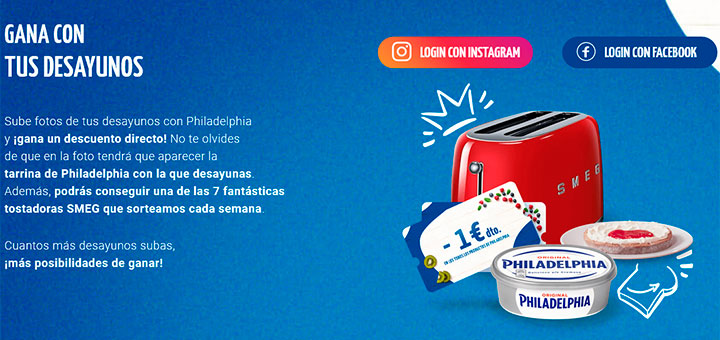 Philadelphia ha lanzado un reto llamado “Dale la Vuelta a la Tostada” con la que reparte ¡7 fantásticas tostadoras SMEG cada semana y otros grandes premio! Al subir fotos de tus desayunos con Philadelphia conseguirás un rebaja directo y entrarás en el sorteo de 7 fantásticas tostadoras SMEG que realizan cada semana :p Lo bueno es que, cuantos más desayunos subas, más posibilidades hay de obtiener. Repartirán en total 10.000 cupones rebaja 1€ canjeables en las compras de Philadelphia Original (250g, 270g, 350g y 2x250g) y Philadelphia Light (250g, 270g, 350g y 2x250g); y 107 tostadoras SMEG. El último día para…