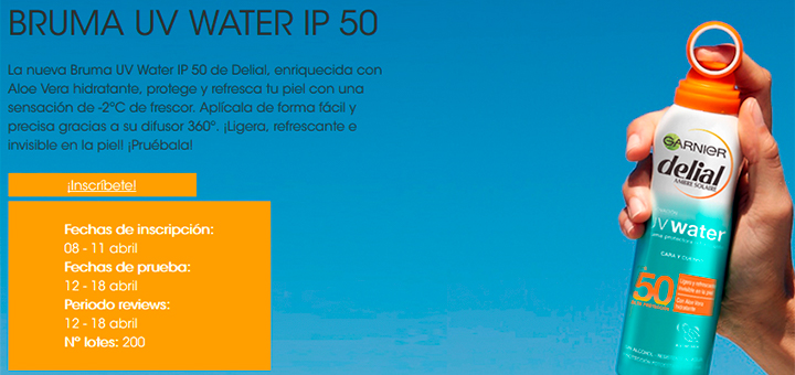 Garnier da a probar gratis Bruma UV Water Ip 50