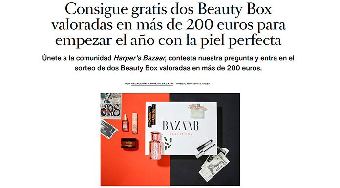 ¡Reparten gratis Beauty Box con Harper’s Bazaar! Es un gran estreno de año. Harper’s Bazaar te dan la oportunidad de conseguir gratis dos Beauty Box valoradas en más de 200 euros para empezar el año con la piel perfecta 🙂 De esta manera, al unirte a la comunidad Harper’s Bazaar y contestar una pregunta podrás […]