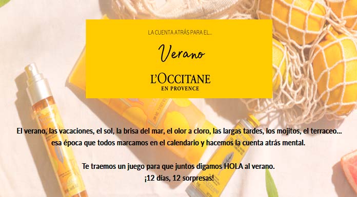 ¡Se estrena el Juego Verano L’Occitane! Como dice la marca L’Occitane, la cuenta atrás para el verano está aquí. Y por ello, te traen un juego para que juntos digamos HOLA al verano.Son, ¡12 días, 12 sorpresas! Los grandes premio que reparten son los siguientes: 300€ en productos L’Occitane disponibles en el momento del envío en […]