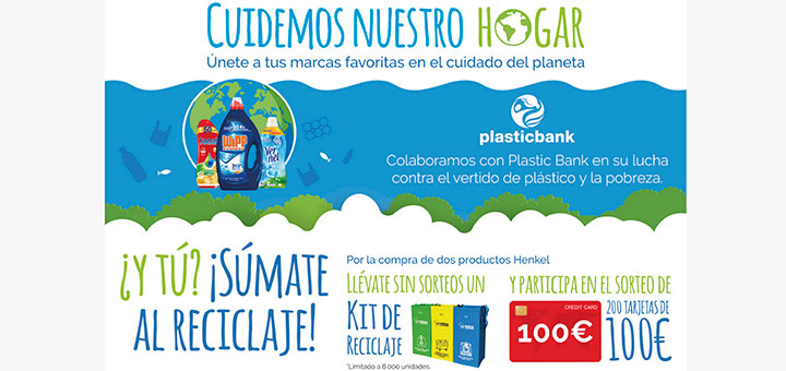Tu Casa Club nos trae esta fantástica promoción con la que te podrás llevar sin sorteos ¡un Kit de Reciclaje! Cuentan que colaboran con Plastic Bank en su lucha contra el vertido de plástico y la pobreza 🙂 Así, anima a sus fans a unirse a tus marcas favoritas de Henkel en el cuidado del planeta. Los primeros 6.000 que participen en esta promoción se llevarán gratis un kit de reciclaje y además, todos los participantes entrarán en el sorteo de 200 tarjetas de 100€. Las marcas participantes de Henkel Laundry&Home Care son Wipp, Dixan, Micolor, Perlan, Vernel, Neutrex, Somat,…