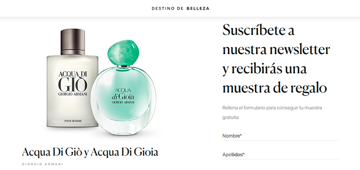 Buenas noticias: A través de la web de Destino de Belleza reparten este verano muestras gratis a domicilio de las fragancias de Acqua Di Giò y Acqua Di Gioia de Giorgio Armani! Los primeros que se suscriban a la newsletter de esta web, L’Oreal ofrece información sobre interesantes eventos, promociones, rebajas y comunicaciones personalizadas que realizan, y ahora también reparte muestras de regalo de de las fragancias de Acqua Di Giò y Acqua Di Gioia de Giorgio Armani 🙂 Además, como vamos contando con frecuencia, comparte a través de esta plataforma recomendaciones y opiniones de perfumes, maquillaje y tratamientos de belleza…
