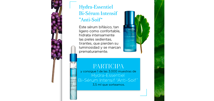 No te puedes perder esto porque reparten ¡3.000 Muestras gratis de Hydra-Essentiel Bi-Sérum Intensif “Anti-Soif” de Clarins! Se trata de un sérum bifásico ligero y confortable, que hidrata intensamente la piel sedienta, tirante, sin apenas iluminosidad y se marcan prematuramente. Pues bien, ahora lo dan a probar gratis a los fans de la marca Clarins 🙂 Entre todos los que participen van a sortear 3.000 muestras gratis de Hydra-Essentiel Bi-Sérum Intensif “Anti-Soif” de 3.5ml cada una. Tiene muy buena pinta. A continuación explicamos cómo participar. El último día para participar es el 18 de julio de 2019. Si te gustaría…