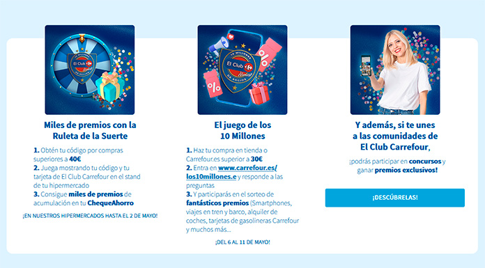 El Club Carrefour está de celebración ¡Son ya 10 millones de socios! Por ello reparte fantásticos grandes premio. Ahora mismo, tienen activas dos tipos de promociones diferentes: Miles de grandes premio con la Ruleta de la Suerte y El juego de los 10 Millones, con los que podrás conseguir un montón de grandes premio. ¡No te lo puedes […]
