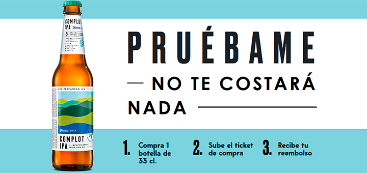 Nueva promoción de reembolso: ¡Dan a probar gratis cerveza Complot de Damm! Se trata de la primera cerveza que han elaborado con lúpulo mediterráneo, su Ipa Mediterránea. Tal y como cuentan, Complot Ipa es un producto complejo elaborado con 8 variedades diferentes de lúpulo, incorporadas en diferentes momentos del proceso para aportar más amargor o más aroma en cada caso. ¡Y ahora lo dan a probar gratis a través de reembolso a los primeros participantes! Esta promoción es válida en toda España hasta el 31 de diciembre de 2019 ó fin de existencias, ¡repartirán hasta 3.000 reembolsos! Para probar gratis…