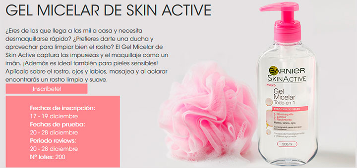 Atención a lo que nos trae Garnier para estas fiestas: Da a probar gratis su producto ¡Gel Micelar de Skin Active! Para aquellas que llegan tarde a casa y necesitan desmaquillarse rápido o prefieran darse una ducha y aprovechar para limpiar bien el rostro, el Gel Micelar de Skin Active captura las impurezas y el maquillaje como un imán fácilmente. Y también es apto para pieles sensibles 🙂 Sólo hay que aplicarlo sobre el rostro, ojos y labios, masajear y aclarar para conseguir un rostro limpio y suave. ¡Y ahora lo probarán gratis 200 afortunad@s! Se podrá participar hasta el…