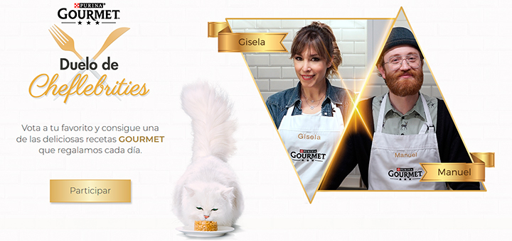 Si tienes gatos seguro que te gustará saber que ¡Purina regala deliciosas recetas Gourmet cada día! Llega el “Duelo de Cheflebrities” de Purina Gourmet, donde los concursantes de Gourmet Cheflebrities elaboran un plato inspirado en la receta favorita de su gato :p Y ahora al votar tu favorito podrás descubrir si has obtienedo una de las muestras Gourmet que regalan cada día. Entre todos los participantes regalarán hasta 5.000 muestras de productos de la gama Purina Gourmet alimentación húmeda por momento obtienedor. En función de la participación, regalarán una de las siguientes muestras a domicilio: Purina Gourmet Gold Fondant o…