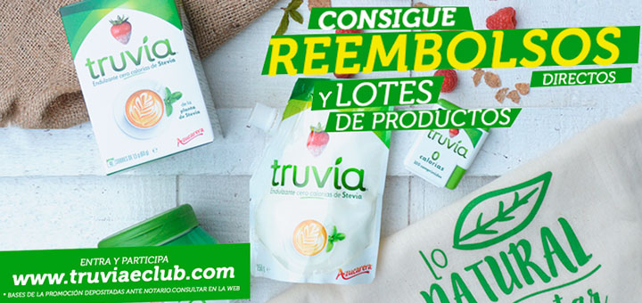 Atención a esto porque ¡Truvía reparte reembolsos de hasta el 50% y lotes de productos! Ideal para cuidarse. Se trata de un endulzante de origen natural que proviene de la planta de la stevia. Y ahora con truvia eclub, hasta final de año, dan la oportunidad de aprovechar una promoción que tienen activa, por la cual al comprar truvía podrás conseguir reembolsos de hasta el 50% y sorteos de lotes de sus productos🙂 Además, reparten regalos directos, rebajas y experiencias Truvía. Los grandes premio que reparten son los siguientes: Reembolsos-> 50% de reembolso en Truvía Pastillas 100 uds, Truvía Sobres 40…