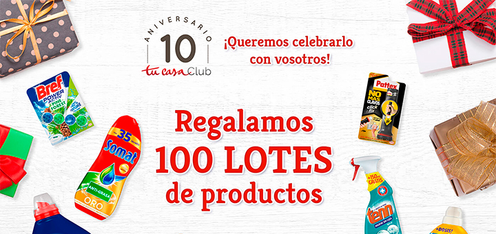 Buenas noticias: Es el 10º aniversario de Tu Casa Club y quieren celebrarlo regalando ¡100 lotes de productos de grandes marcas! Sólo hay que jugar a un divertido y fácil juego para participar 🙂 Entre todos los que participen repartirán por momento obtienedor 100 regalos compuestos cada uno de ellos por: 1 lote de productos consistente en 1 WiPP Express Gel Azul 30D, 1 Somat Oro Gel Anti-Grasa 35D, 1 Vernel Cielo Azul 54D, 1 Tenn Higiene pistola, 1 Bref Poder Activo Natura, 1 Pattex Click&Fix. Son unos buenos regalos, ¡¿verdad?! Y participar es muy sencillo, a continuación contamos como…