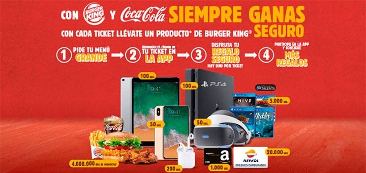 No te puedes perder esto porque te podrás llevar un ¡Regalo seguro en Burger King! Nos han contado que a través de la app de Burger king y por la compra de un menú grande o gigante te podrás llevar un regalo seguro de los que reparten, que son: Chicken Burger, Hamburguesa de 1 euro, patatas pequeñas, King Fusion Oreo y café con helado. Qué hambre da :p ¡Tienen para repartir 5 millones de regalos! Esta promoción estará activa hasta el 7 de enero de 2018 ó fin de existencias. Para conseguir un regalo seguro en Burger King puedes seguir…