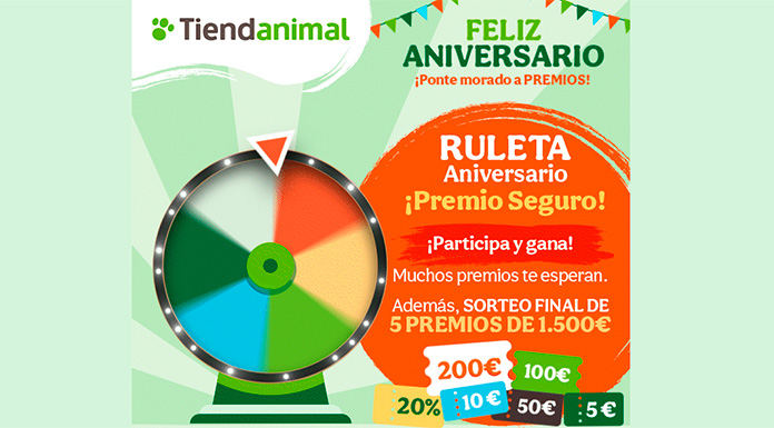 ¡Está disponible la Ruleta Aniversario Tiendanimal! Es el Feliz Aniversario de Tiendanimal y por ello te invitan a ponerte morado a grandes premio 🙂 Así, al participar obtienerás premio seguro. ¡¿Te lo vas a perder?! Como dicen, muchos grandes premio te esperan. Además, tienen activo un sorteo final de 5 grandes premio de 1.500 euros. Hay grandes premio de […]