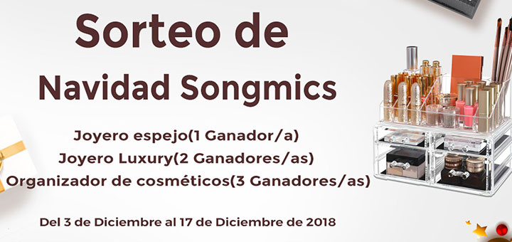 Mira el sorteo que nos trae Songmics: A través de el reparten ¡increíbles regalos para esta navidad! Ya que queda poquísimo para que llegue navidad, Songmics ha lanzado este sorteo en el que reparte los siguientes premios: 1 Armario Joyero, 1 Joyero de 3 pisos, 1 estuche joyero y 3 organizadores de maquillaje / cosmética ¡¿no es genial?! Elegirán a 6 ganador@s 🙂 Esta promo es válida en Estados Unidos, el Reino Unido, Alemania, Francia, España e Italia hasta el día 17 de diciembre de 2018. Para entrar en el sorteo de un fantástico premio con Songmics puedes hacer lo…