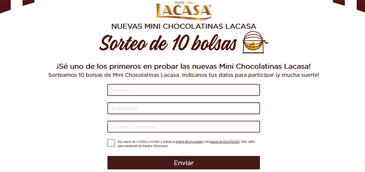 Sortean 10 bolsas de Mini Chocolatinas Lacasa