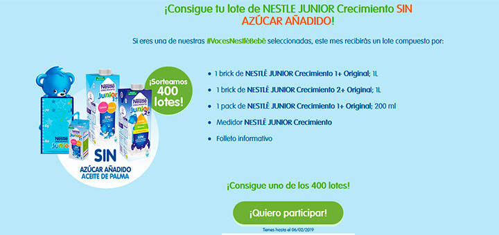 Sortean 400 lotes de Nestlé Junior Crecimiento