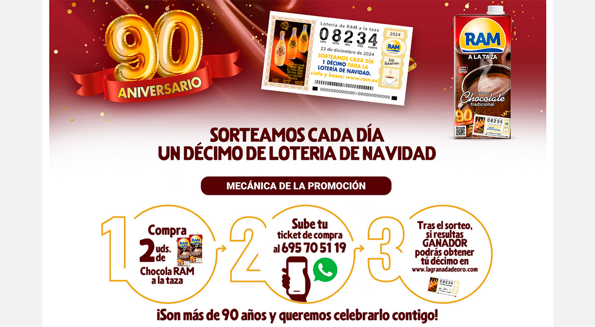 ¡Llega este gran sorteo de Navidad de RAM! Sí, has leído bien. Es el 90 aniversario de RAM y quieren celebrarlo contigo ¡sorteando cada día un décimo de lotería de Navidad! Así, por la compra de 2 unidades de bricks de 1L de RAM a la taza, chocolate tradicional en cualquier establecimiento físico a nivel […]