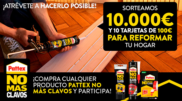 ¡Vuelve a estar activo un gran sorteo de Pattex para reformar tu hogar! Para atreverte a hacerlo posible 🙂 La gran marca de Pattex se ha animado ha lanzar este sorteo con el que, entre todos los que participen en el, sortearán 10.000 euros y 10 tarjetas de 100 euros para reformar tu hogar. Repartirán […]