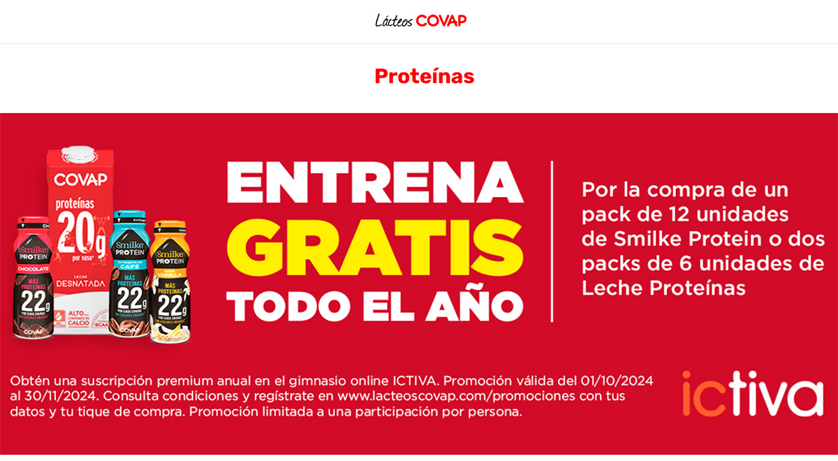 ¡¡Te cuento las últimas promociones de Lácteos COVAP!! La marca Lácteos COVAP dedica una página entera a sus últimas promociones que van lanzando. Por ejemplo ahora, dan la oportunidad de entrenar gratis todo el año 🙂 Por la compra de un pack de 12 unidades de Smilke Protein o dos packs de 6 unidades de […]